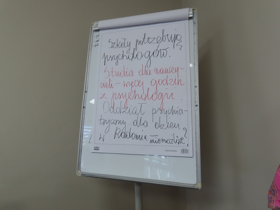 Rząd  niestety  nie  robi  nic,  aby  wspierać  psychiatrię  dziecięcą . W  Radomiu  nie  ma  oddziału  psychiatrycznego. Najbliższy  szpital  dla  dzieci  powyżej  14  roku  życia   jest w Konstancinie – mówili  zaproszeni  eksperci , którzy  na  co dzień  zajmują  się    problemami  psychicznymi  dzieci i młodzieży. Dzieci  młodsze  są  kierowane do Otwocka lub  na  Banacha  w  Warszawie. Na  pytanie  o  plany  otwarcia psychiatrycznego   oddziału  dziecięcego w Krychnowicach -  w  Radomiu  ekspert  stwierdził, że  nie  ma  takich  planów  gdyż  nie  ma  wystarczającej  liczby lekarzy  psychiatrów. Dziś  działania   rządu są  nieskoordynowane. Brak  jest  koordynacji systemu  wsparcia  w  mieście. Nie  mamy  psychoedukacji w Polsce  w ogóle. W   szkołach  brak  jest  psychologów, albo  nie  ma  ich  wcale, gdyż  wynagrodzenia w  szkołach są  zbyt  niskie  , by  psychologowie  chcieli  wiązać swoje  plany  zawodowe  ze  szkołami. Co  druga  szkoła  w  Radomiu  nie  ma  psychologa. Szkól  nie  stać  na  zatrudnianie  psychiatrów.
